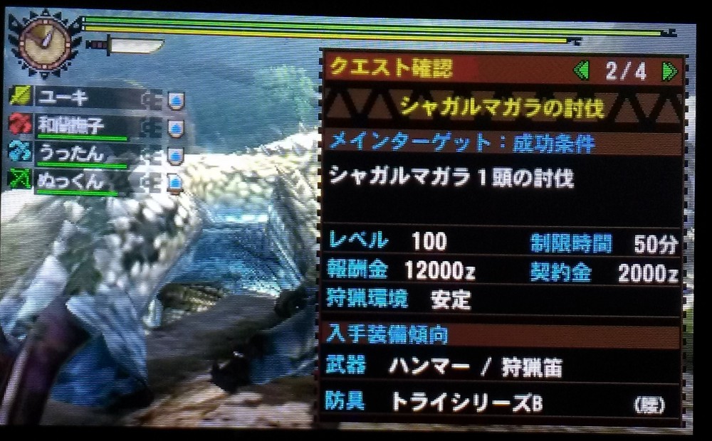 モンハン4を家族でやっています。